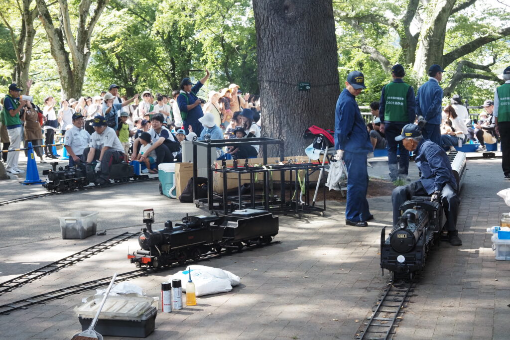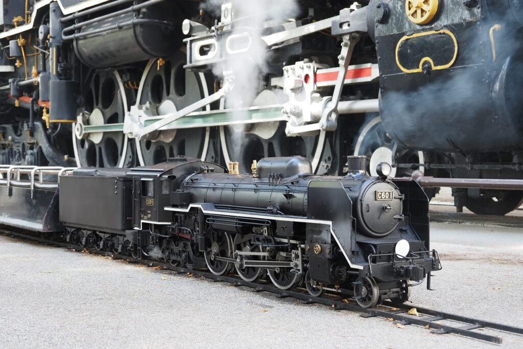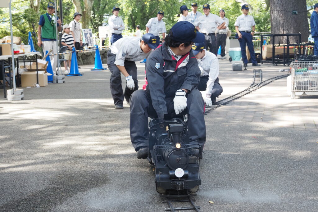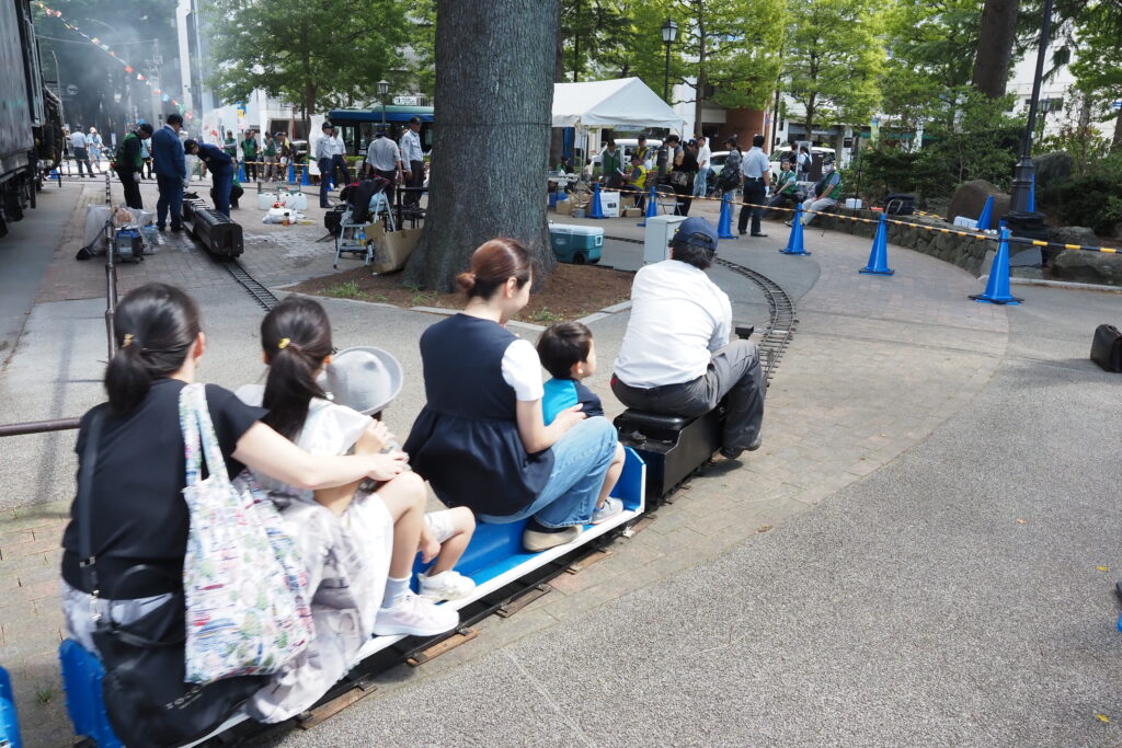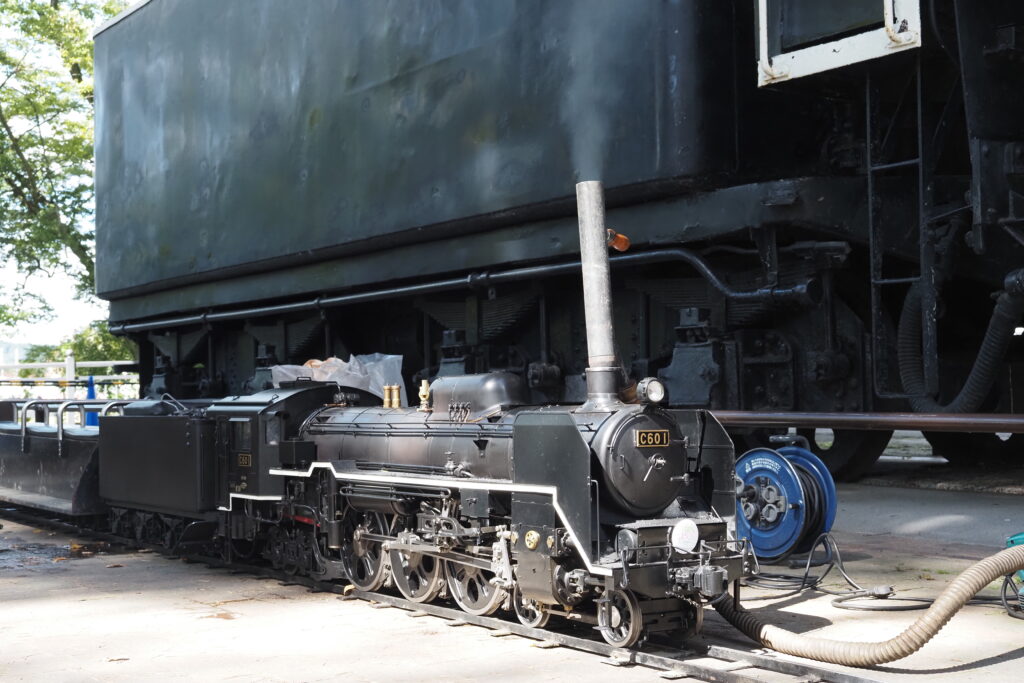 ミニSL運行はJR貨物東北支社様との共催で、車両やレールの提供を受けてC601の周りを周回運転していただいたほか、首都圏の同好団体「浪漫鐡道クラブ」がミニSL・C601をはるばる持ち込まれ、C601の横でデモ運転を行いました。