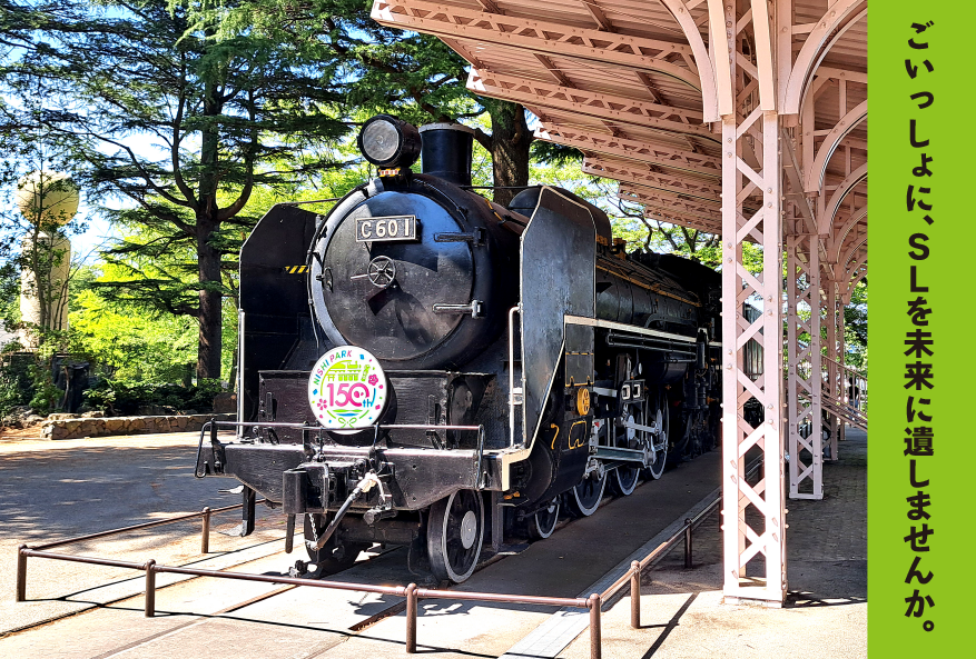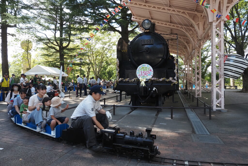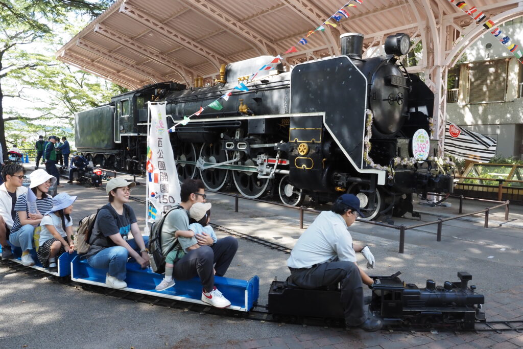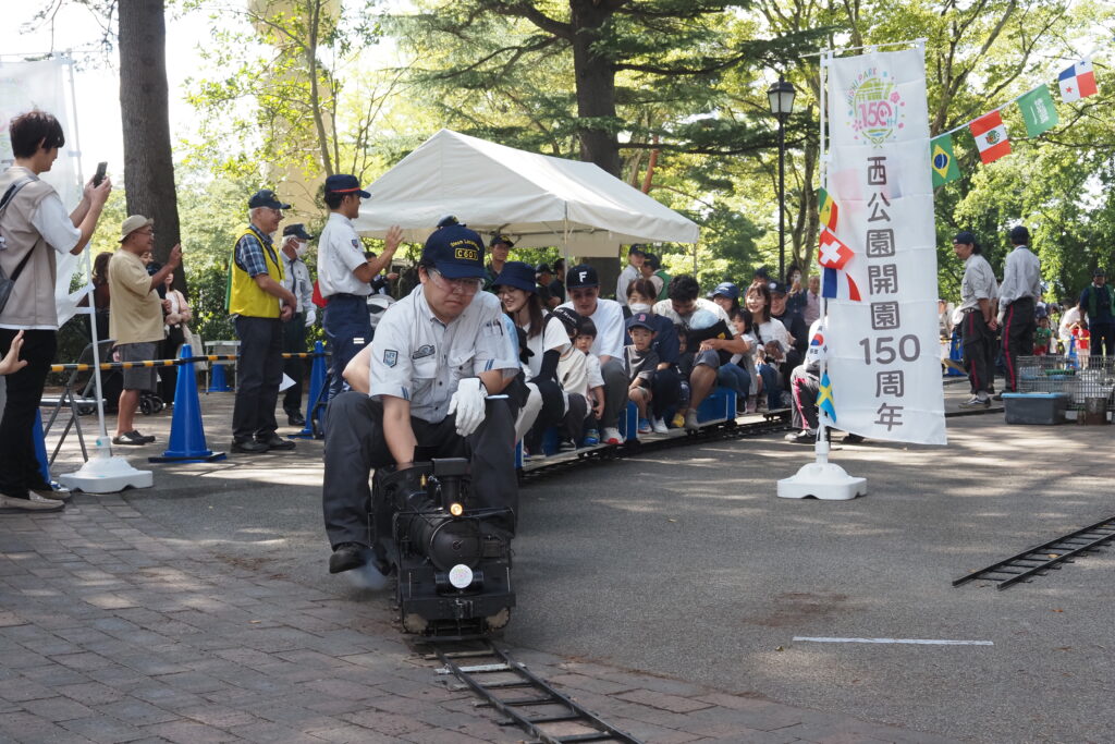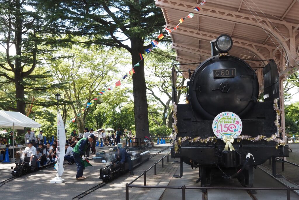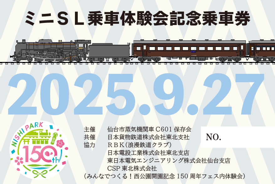 蒸気機関車C601が保存されている仙台市西公園はことし開園150周年を迎え、これを記念して、仙台市青葉区は9月27日に「西公園開園150周年記念フェス」を開催しました。この催しに本会は、ミニSL乗車体験会を行って参加し、多くの来場者に楽しんでいただきました。